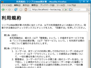 利用規約の確認画面がでます。ひと通り目を通したうえで、画面一番下のチェックボックスにチェックを入れ、[同意する] をクリックします。